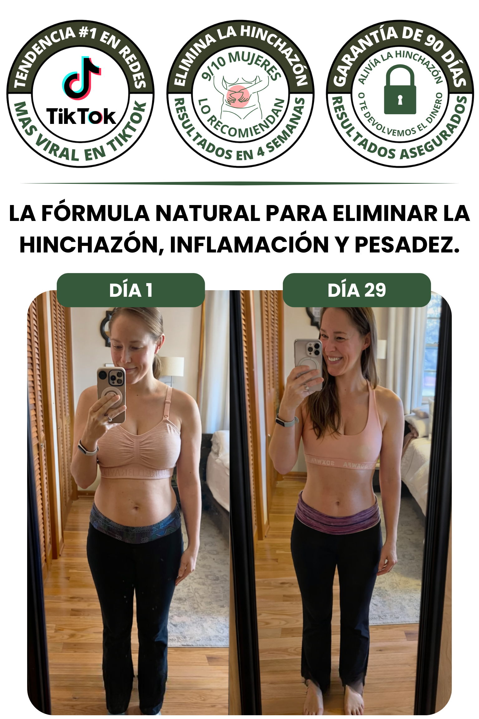 La mayoría empieza a notar mañanas más livianas y menos hinchazón visible en 7 a 14 días.